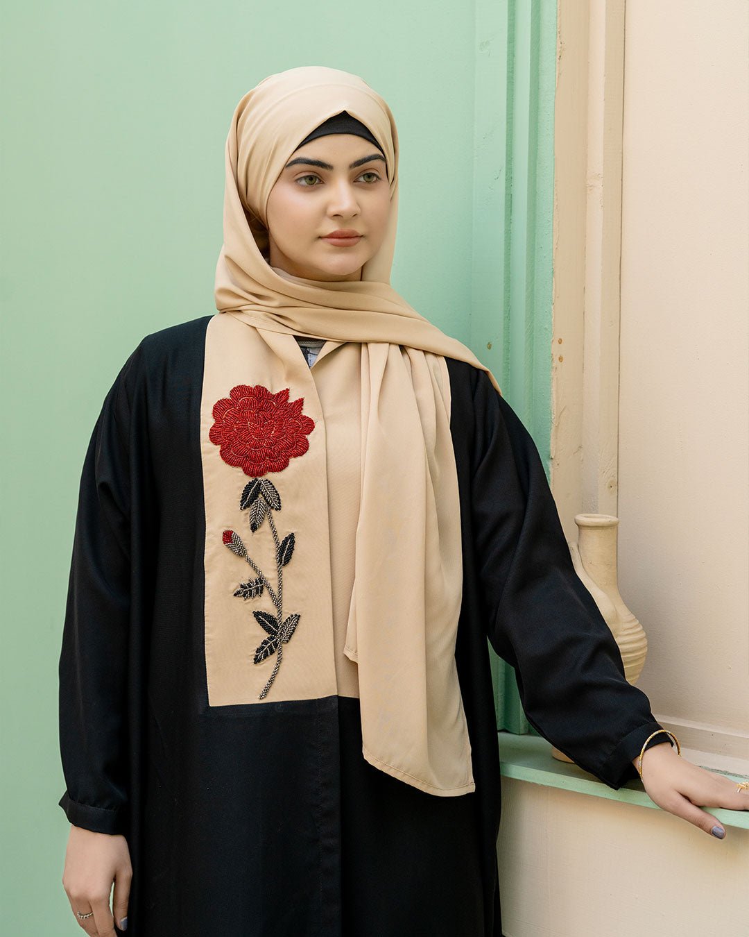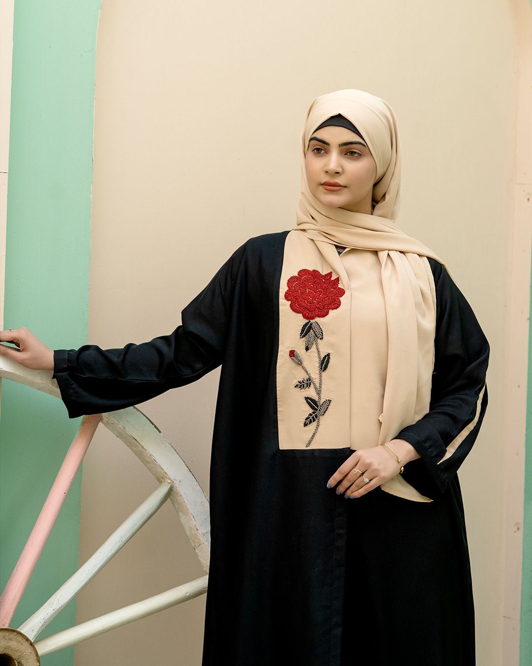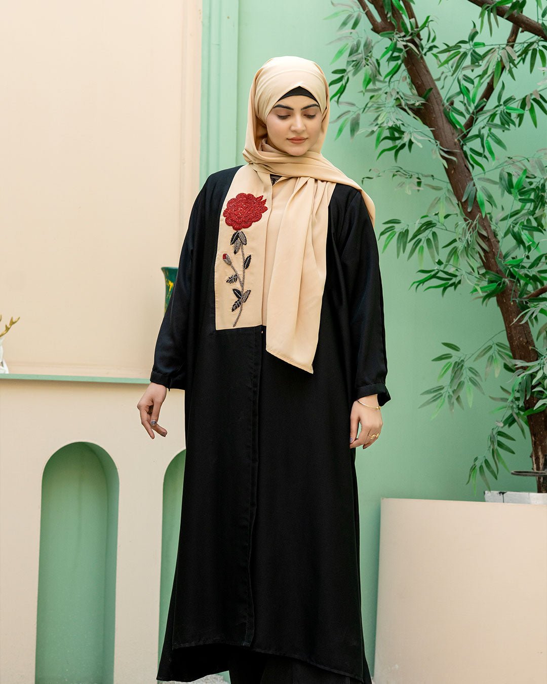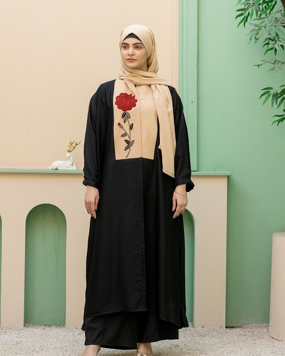 Description : Flora Veil blends modern modesty with classic elegance. Made from premium Nida, it drapes beautifully while ensuring comfort. The embroidered floral detailing on the front panel adds softness and charm, making it perfect for graceful everyday wear and special moments alike