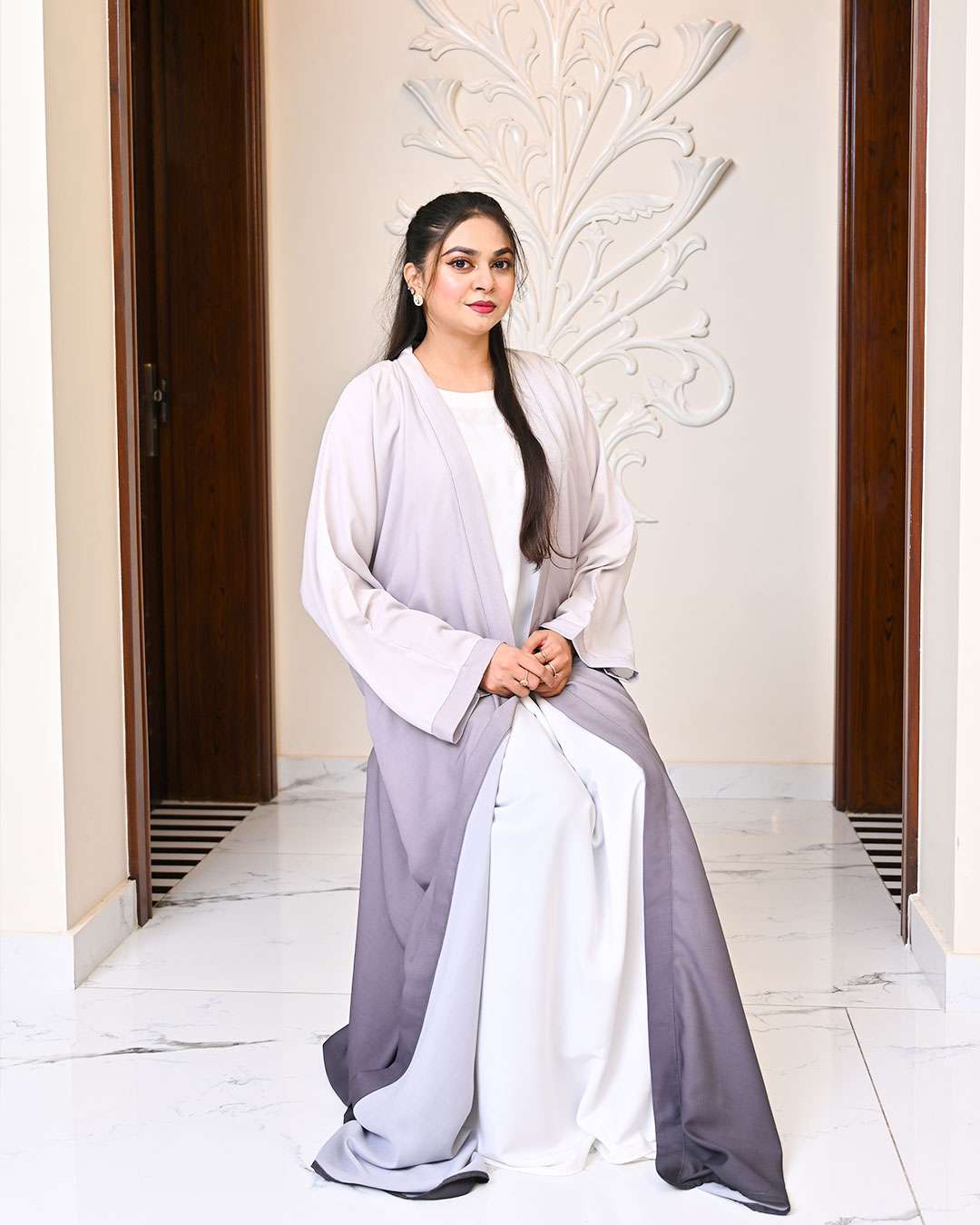 Crafted from premium Nida fabric, this abaya features a soft gradient from light to deep grey offering timeless elegance with a modern touch. Designed for everyday comfort and graceful movement, it’s the perfect choice for those who value modesty with style.